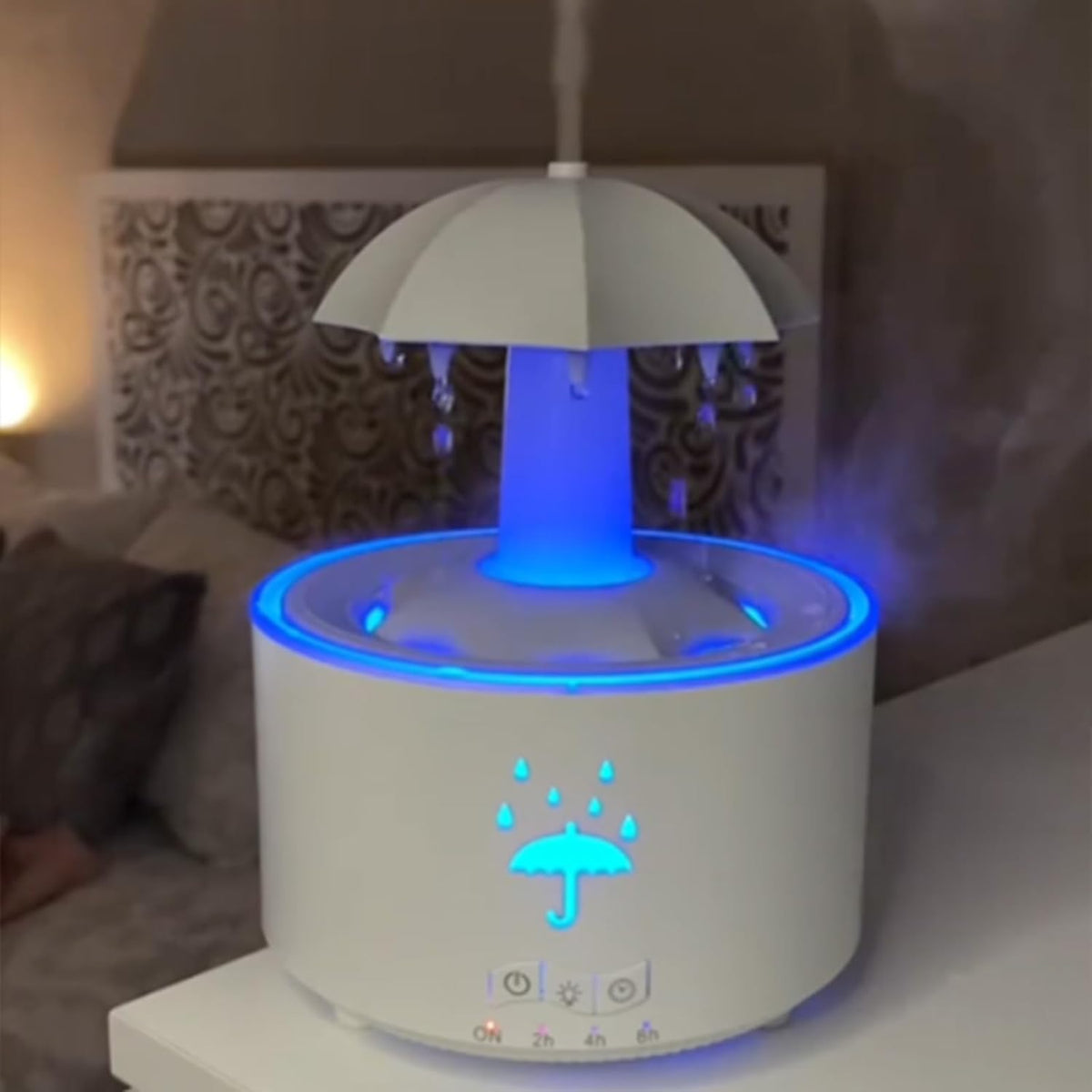Umbrella Humidifier, Umbrella Diffuser with Rain Effect, Misefy Zupina Humidifier, Umbrella Waterfall Humidifier with Water Droplets, 7-Color Led Rotating Aroma Diffuser with Remote (White-1 Pc)